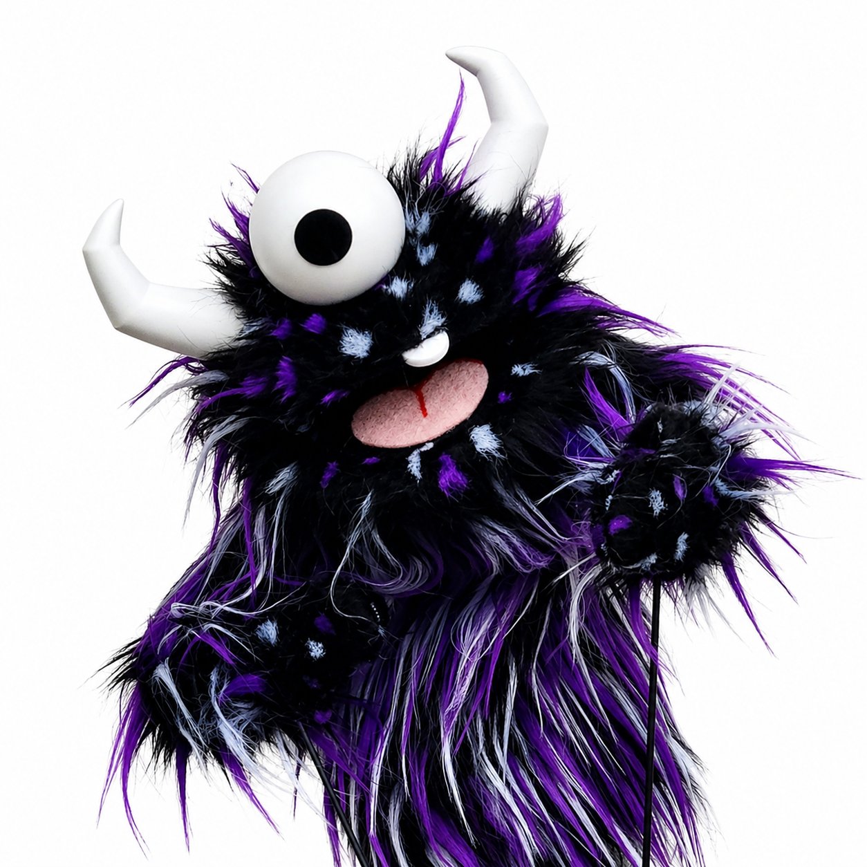The CYCLOPS Critter Monster Puppet in Black with Purple and White Spikes