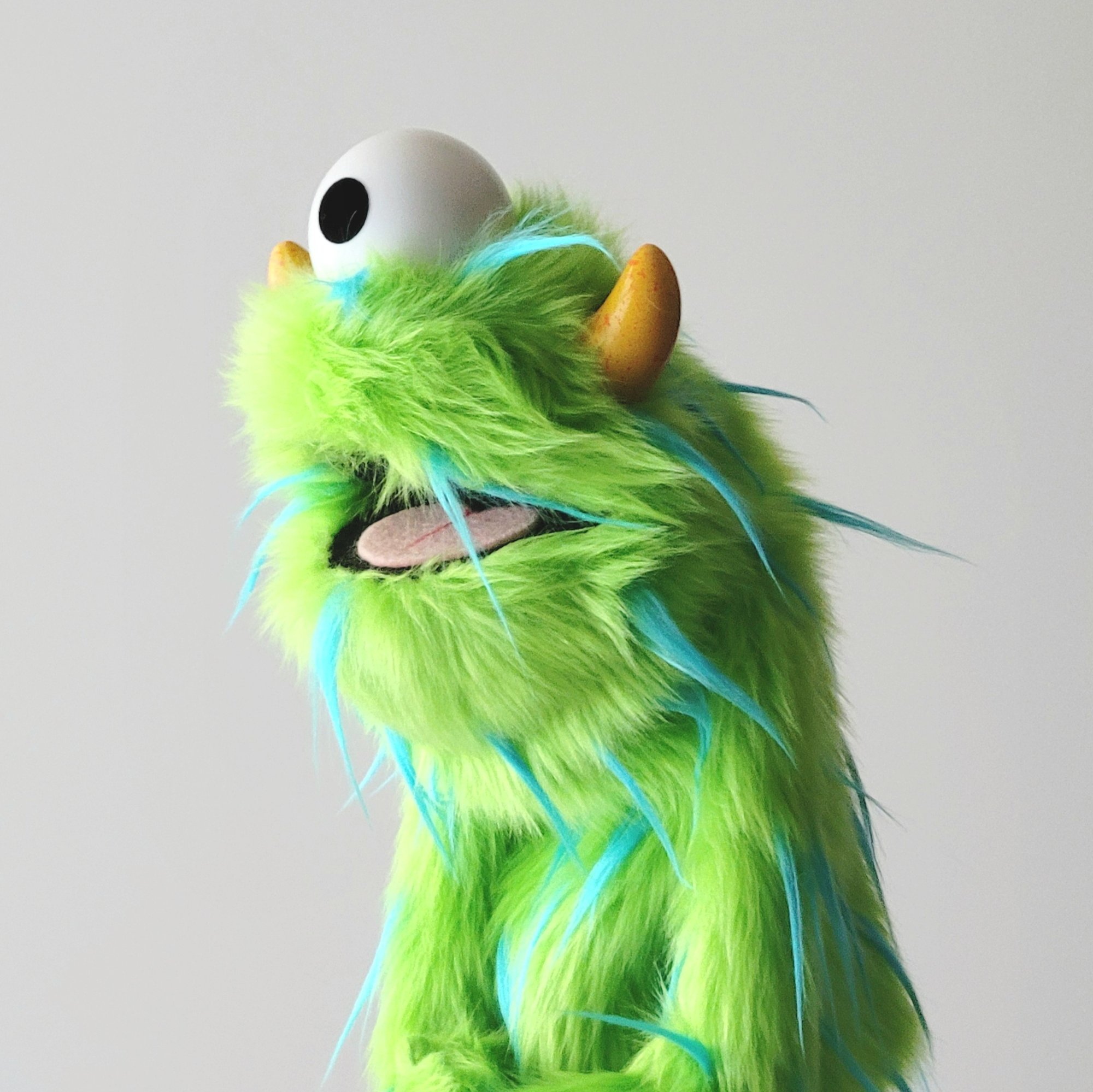 Fun! Fluffy! And full of personality! Meet our cast of professional critter monster practice puppets! The mouth palate is the same as found in our large, professional puppets, lined with fabric and grips to help you puppeteer with minimal hand fatigue. This little creature features shortened, built-in hand rods making it easier to manipulate as an up close and personal puppet. Designed for little hands and grown hands alike looking to refine their puppetry skills.